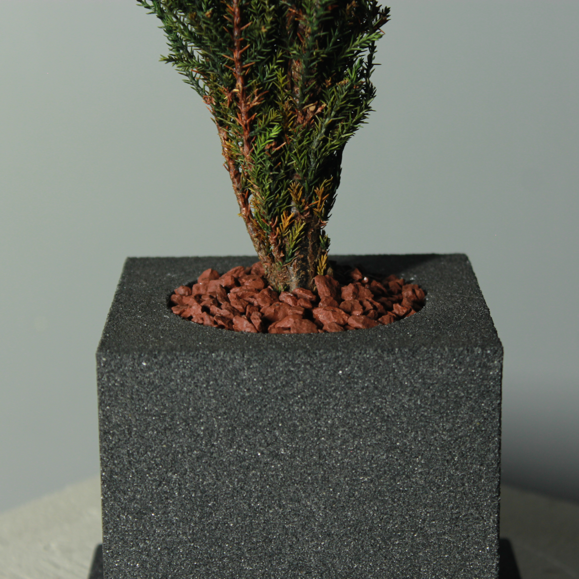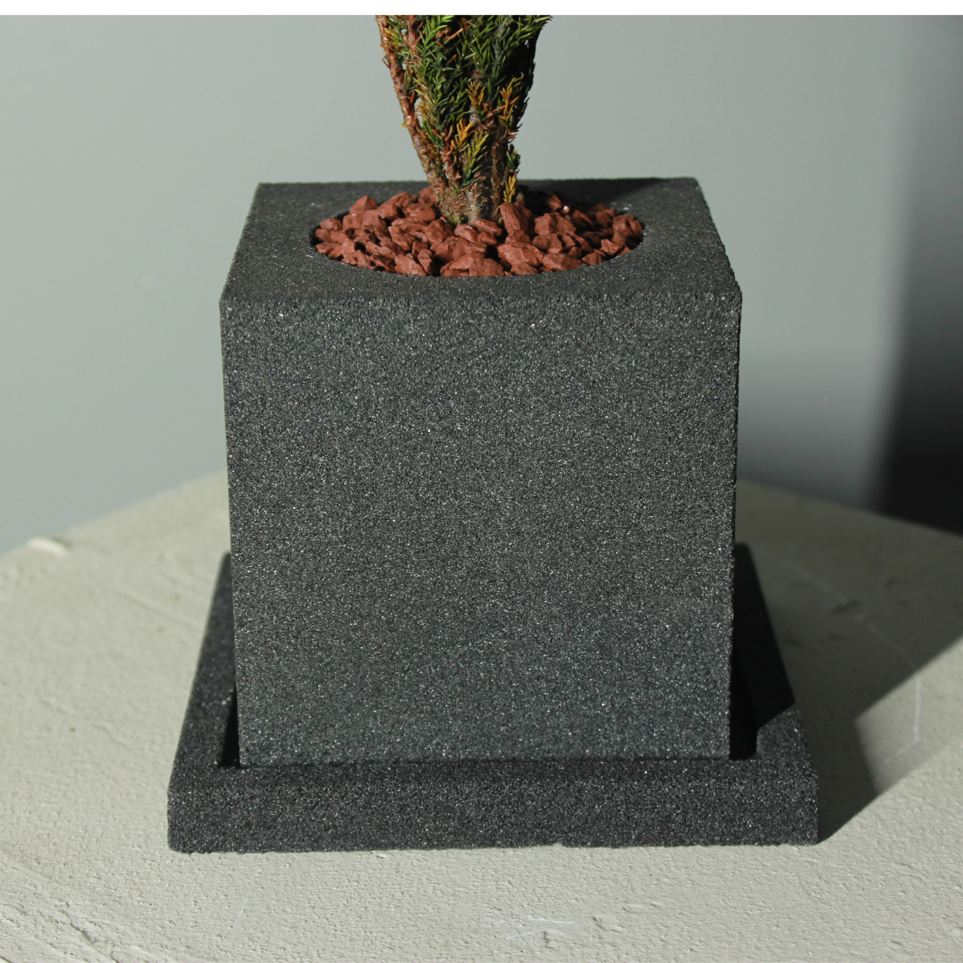 茶砂を固めた鉢。 約10cm×約10cm正方形 高さ11cm 石を敷いて固めています。 |