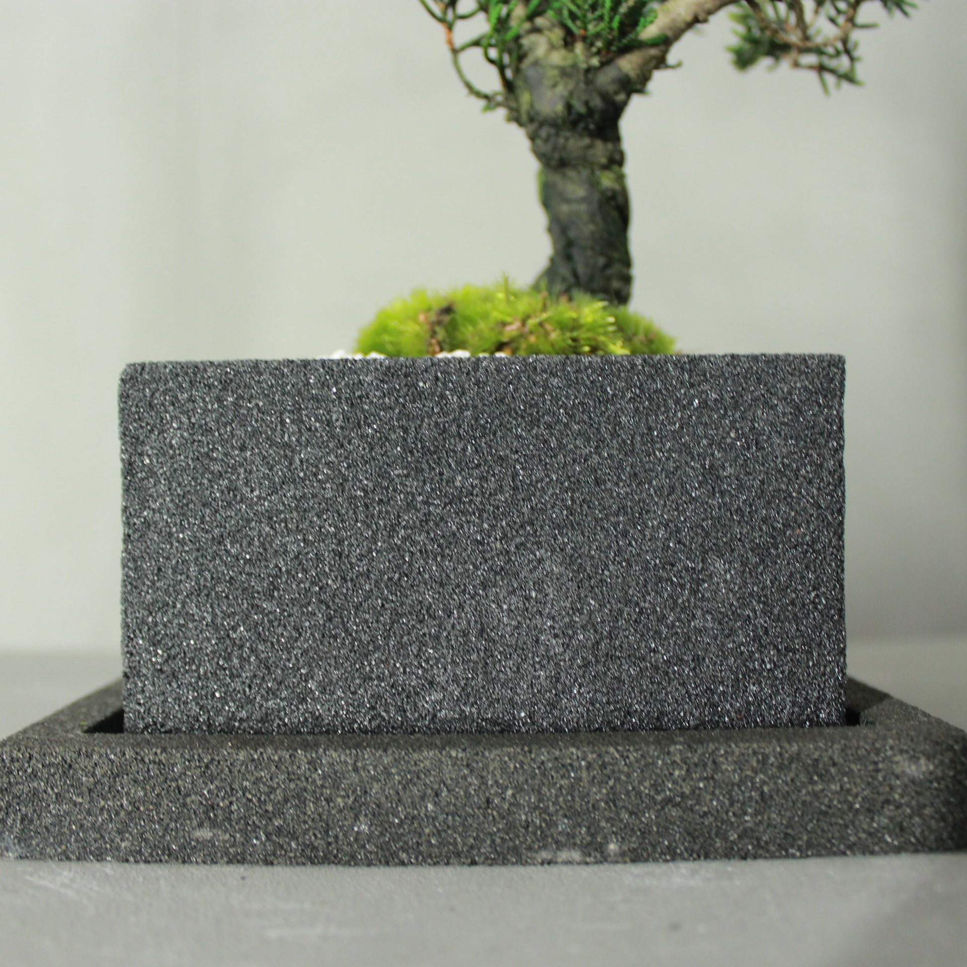 鉢 約10cm×約10cm 下皿 約13cm×約13cm 人工芝と白石を敷いています。 |